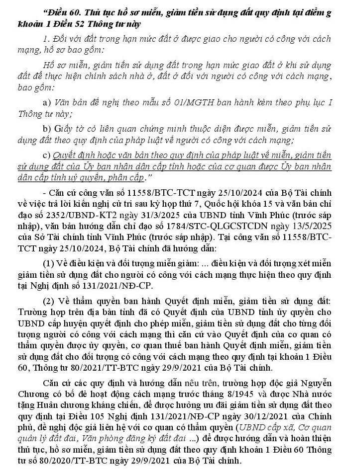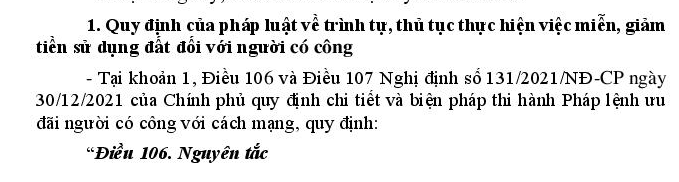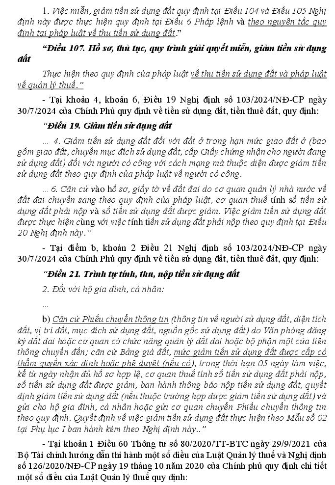 Theo Điều 105  Nghị định 131/2021/NĐ-CP (Chế độ giảm tiền sử dụng đất): “3. Giảm 70% tiền sử dụng đất trong hạn mức giao đất ở khi Nhà nước giao đất ở, chuyển mục đích sử dụng đất sang đất ở, công nhận quyền sử dụng đất ở, khi được mua nhà ở thuộc sở hữu của Nhà nước đối với các đối tượng sau: