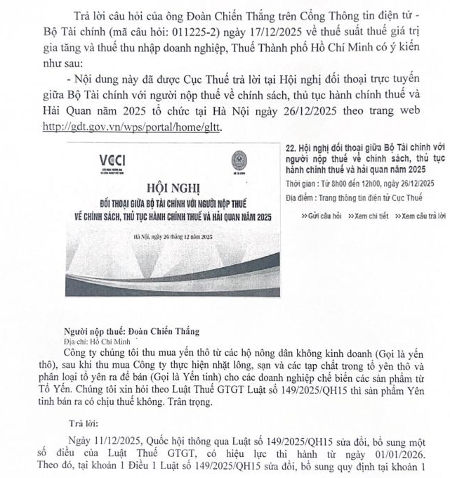 Câu 1: Năm 2022 Công ty tôi thu mua tổ yến thô từ cá nhân nuôi yến, sau khi thu mua Công ty được đem đi làm sạch bằng cách nhặt lông, rác, võ trứng dính vào tổ sau đó phân loại đem bán Được gọi là yến tinh (Không pha tạp chất nhu lông, lá, rác, vỏ trúng). "Không pha chế các hương liệu, không đun nấu mà chỉ nhặt lông..." Như vậy theo Thông tư Thông tư 219/2013/TT-BTC của Bộ Tài chính thì sản phẩm trên thuộc đối tượng chịu thuế hay không chịu thuế.