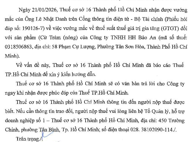 Kính gửi Quý Bộ, Công ty chúng tôi có mua sản phẩm trồng rừng (Cừ tràm (nóng) dài L: 4m, gốc 8cm>10cm) về bán lại cho 1 doanh nghiệp thi công xây dựng để làm đóng móng cọc công trình. Căn cứ Luật Thuế GTGT và Nghị định số 359/2025/NĐ-CP của Chính phủ, tại mục a, b khoản 1b có quy định : “a) Doanh nghiệp, hợp tác xã, liên hiệp hợp tác xã nộp thuế giá trị gia tăng theo phương pháp khấu trừ thuế bán sản phẩm cây trồng, rừng trồng, chăn nuôi, thủy sản nuôi trồng, đánh bắt chưa chế biến thành các sản phẩm khác hoặc chỉ qua sơ chế thông thường cho doanh nghiệp, hợp tác xã, liên hiệp hợp tác xã khác ở khâu kinh doanh thương mại thì không phải kê khai, tính nộp thuế giá trị gia tăng. b) Trường hợp doanh nghiệp, hợp tác xã, liên hiệp hợp tác xã nộp thuế giá trị gia tăng theo phương pháp khấu trừ thuế bán sản phẩm cây trồng, rừng trồng, chăn nuôi, thủy sản nuôi trồng, đánh bắt chưa chế biến thành các sản phẩm khác hoặc chỉ qua sơ chế thông thường cho các đối tượng như hộ, cá nhân sản xuất, kinh doanh và các tổ chức, cá nhân khác thì phải tính thuế giá trị gia tăng theo mức thuế suất 5% quy định tại khoản 3 Điều 19 Nghị định này. “ Công ty xin hỏi BTC việc Công ty chúng tôi mua vào hóa đơn thuộc diện KKKNT, như vậy Công ty chúng tôi bán ra cho 1 doanh nghiệp thi công công trình thì thuế GTGT bán ra thuộc đối tượng phải kê khai, tính thuế GTGT (thuế suất 5%) hay thuộc trường hợp không chịu thuế GTGT . Công ty rất mong được phải hồi sớm từ Quý Bộ. Xin trân trọng cảm ơn./.